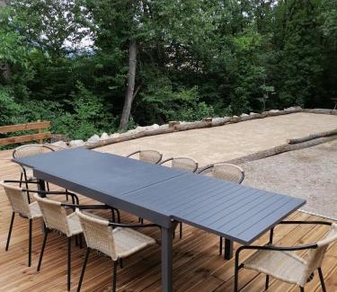 L'Oustaou d'Aiglun offers accommodations in Aiglun, 3.4 miles from Digne-Les-Bains Golf Club. This property offers access to a balcony, table tennis, free private parking, and free Wifi. The vacation home also offers facilities for disabled guests. Featuring a terrace and mountain views, the spacious vacation home includes 5 bedrooms, 2 living rooms, cable flat-screen TV, an equipped kitchen, and 4 bathrooms with a walk-in shower and a bath. Guests can take in the ambience of the surroundings from an outdoor dining area or keep warm by the fireplace on colder days. For added privacy, the accommodation features a private entrance. Guests can swim in the outdoor swimming pool, go hiking or walking tours, relax in the garden, and use the barbecue facilities. Marseille Provence Airport is 78 miles from the property.