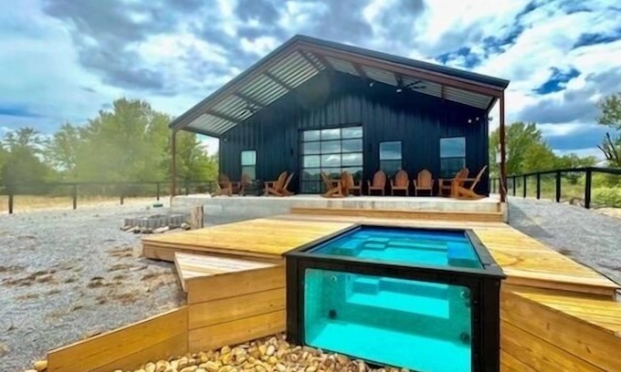 Welcome to L Star Ranch, a modern barndominium located in Ledbetter, TX, just a quick drive to Round Top and Giddings. This home sleeps 8 adults and features 3 bedrooms and 2 full bathrooms. L Star is a modern open concept space with beautiful pasture views from living space and the spacious front deck with a modern container pool. It is perfect for couples, families and groups looking to get away from the city and enjoy the country life or explore the Round Top antiques scene. The property sits on 44 acres with a large pond and plenty of space to view the stars and take in the beautiful Texas sunsets.