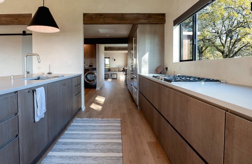 The fully-appointed kitchen has top-of-the-line appliances, full-sized refrigerator, gas cooktop, induction oven, dishwasher, Smeg coffee maker and electric kettle. You will find coffee and an assortment of locally made snacks in the kitchen. A complimentary bottle of our own Cabernet Sauvignon sets the tone for a great stay.