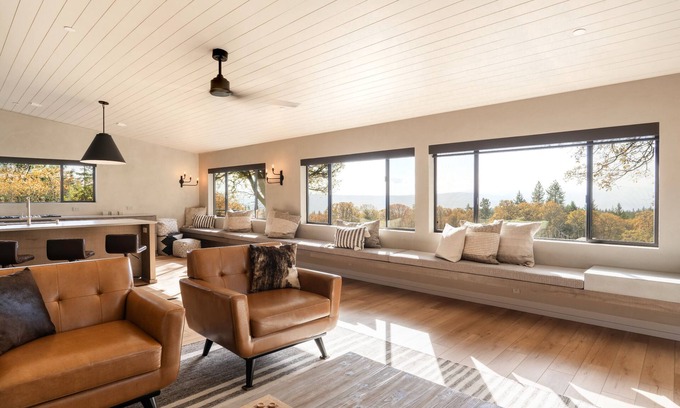 The Farmhouse was completely remodeled to host Ranch Guests for 2024. The Farmhouse offers modern luxury, privacy and relaxation in the heart of a working grass-fed cattle ranch. Up a private drive and away from public roads, retreat to this spacious, modern, one-bedroom, two-and-a-half-bath home. Sweeping, ever-changing views of the ranch and Mt. Hood await.