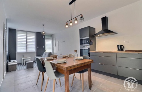 House on the ground floor converted on one level: - a living room with a kitchen and a living room with lounge - a bedroom with a 160X200 bed - a bedroom with two 90X200 beds - a bathroom - a separate toilet Easy and free parking on the street and in the garage. In the city center of Liffré, a pleasant town in the north-east of Rennes, this house offers two comfortable semi-detached rentals ideally located close to services and shops, just 2.7 km from the A84 (Rennes-Caen motorway) and 800 m from the Moulin pond, a place for fishing and relaxation, with a walk on part of the site equipped with picnic tables and fishing pontoons.