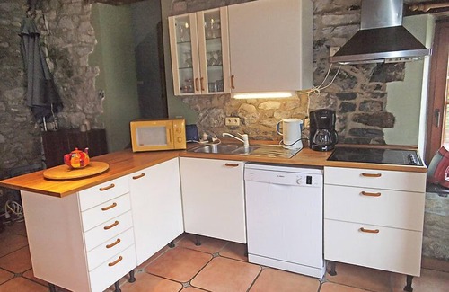 "La Bastide", 3-room house 70 m2 on 2 levels. Practical and cosy furnishings: living/dining room with 1 double sofabed, open-hearth fireplace, cable TV and DVD. Open kitchen (4 hot plates, dishwasher, toaster, kettle, microwave, electric coffee machine). Sep. WC. Upper floor: 1 room with 1 x 2 bunk beds, 1 french bed and shower/WC. 1 room with 1 french bed and bath/WC. Facilities: washing machine. Internet (WiFi, free). Parking at the house. Please note: maximum 1 pet/ dog allowed. Smoke alarm.