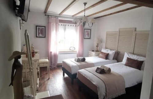Providing garden views, La Bastide Du Bonheur Chambres et Tables D'Hôtes in Ger offers accommodations and a garden. The property is around 30 miles from Scriptorial d'Avranches, Musee des Manuscrits du Mont Saint Michel, 23 miles from Bagnoles-de-l'Orne Golf Course, and 25 miles from Clécy Cantelou Golf Course. There's a sun terrace and guests can access free Wifi and free private parking. At the bed and breakfast, the units are equipped with a wardrobe, a flat-screen TV, a private bathroom, bed linen, and towels. A fridge and minibar are also featured, as well as a coffee machine and a kettle. The rooms are equipped with heating facilities. There is an on-site coffee shop. For guests with children, the bed and breakfast provides both an indoor and outdoor play area. The bed and breakfast has a picnic area where you can spend the day outdoors. Mont Pinçon is 28 miles from La Bastide Du Bonheur Chambres et Tables D'Hôtes. Caen–Carpiquet Airport is 51 miles away.