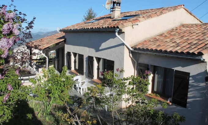 House of 150 m2 on two levels. Ground floor : * Entrance hall, fully equipped kitchen opening onto a dining area. Living room with a beautiful cast iron fireplace for evening fires. * Two bedrooms with double beds. * A bathroom, toilet. * A bathroom, toilet. At 1st level: * Two other bedrooms for 2 people each * A bathroom with toilet. For your comfort, the beds will be made, sheets and towels provided. Large terrace with barbecue where grilling will be within your reach. Ground. Free provision of a ping-pong table and bicycles. Including charges. Optional end-of-stay cleaning on request. Country house perched on a python with a breathtaking 360° view over all the Mercantour mountain ranges to the sea. This large house is located in a green park of 2500 m² ideal for a quiet stay. Entrevaux Citadel, Cians de Daluis gorges, Valberg 40 minutes, and 1 hour from Nice.