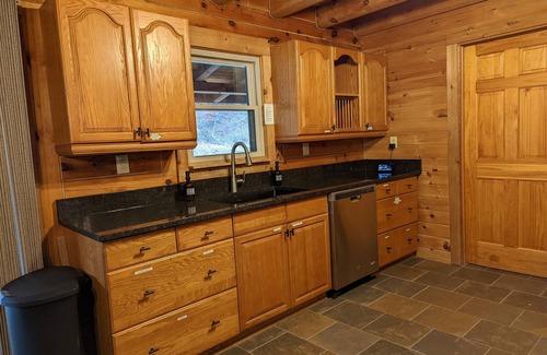 A fully equipped kitchen offers your typical dishes and silverware (including kid-friendly options), stainless steel pots and pans, knife set, double oven with toasting capabilities, crockpot, electric skillet, electric griddle, hand mixer, blender, rice cooker, mixing bowls, ice cream scoop, pizza cutter, pizza stones, corkscrew/bottle opener, can opener, and more. We leave cabinet space open for guests to store their own food/supplies.