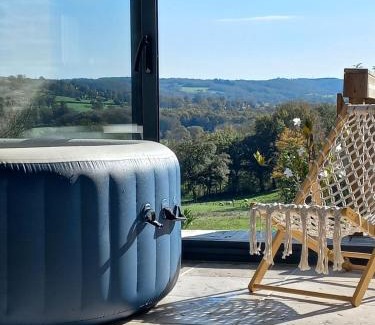 20 miles from National Golf in Ahun, La Bergerie de Chantemille - Les Mésanges features accommodations with access to spa facilities. Guests may go for a swim in the pool with a view. The bed and breakfast has a sun terrace and a hot tub. With free Wifi, this bed and breakfast offers a flat-screen TV, and a fully equipped kitchenette with a microwave and fridge. Towels and bed linen are offered in the bed and breakfast. The property has an outdoor dining area. Guests can swim in the indoor pool, go hiking or walking tours, or relax in the garden. Limoges – Bellegarde Airport is 71 miles from the property.