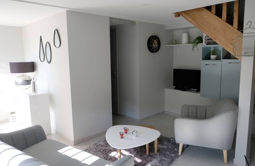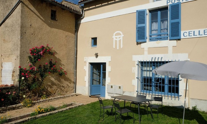 Adjoins and can communicate with La Poste Restante. Former post office in a village with medieval features in a nature area (zero-pesticides, floral village). Ground floor: living area (kitchen and lounge), separate bathroom, WC. 1st floor: 1 bedroom with a king-size and single bed. Small front garden with garden furniture. Near Poitiers 24 km, Futuroscope theme park 37 km, Cormenier Museum 32 km, Monkey Valley 25 km. Walking, cycling and fishing on the doorstep, outdoor activities and mini-golf in the village.