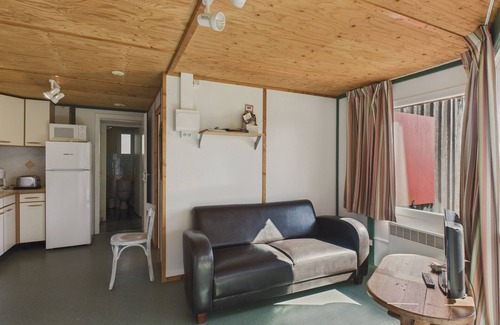 The chalet includes two bedrooms: one with a double bed (140x190), and the other with a double bed (140x190) and a single bed (90x190), ideal for accommodating a family or a small group.