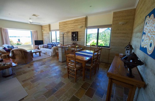 This rammed earth courtyard cottage is so comfortable that you won't want to leave. Set in a very quiet cul-de-sac with a 5-minute stroll to the beach, shops and cafes.