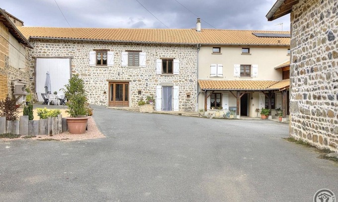 In Haut Beaujolais, very close to the Saône et Loire, in the countryside, Joëlle and Bernard, recently retired farmers, will be delighted to welcome you to their 2 farm cottages located just 1km from the village of Trades. Animal lovers, they will be able to show you the chickens, cows and sheep of their son who took over the farm. (possibility of buying organic eggs) Many walks in the forest are available to you. You will have a large shared courtyard, with a bowling green and a covered shelter for 3 vehicles. The renovated stone house has 2 adjoining single-storey gîtes and the owners' accommodation. The cottage for 3 people has on the ground floor, a day room with kitchen area, a sofa. Shower room and separate toilet. Upstairs, you will have access to a bedroom for 2 people (1 double bed) and a sleeping area on the mezzanine with 1 single bed. Outside: the terrace area (south facing) is equipped with table, chairs and stone charcoal barbecue for good times with family or friends. You can enjoy this space in complete peace, the owners have their own exterior overlooking the other side. Ideal for a night, a weekend or a stay on the farm. Possibility of renting the 2 gîtes for a capacity of 10 people.