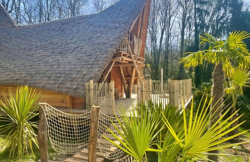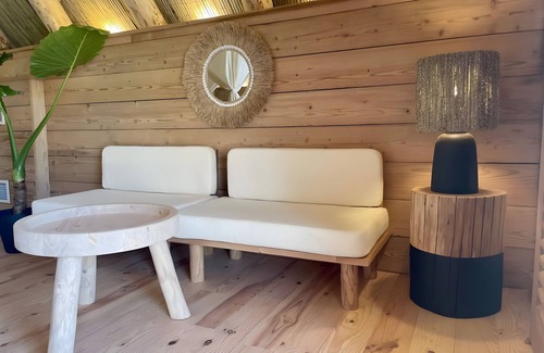 Discover this charming 35 m² cabin, perched 2 meters above the ground, offering a unique and intimate experience in the heart of nature. Fully equipped and designed for your comfort, it features a private Nordic spa heated to 38°C, perfect for relaxing moments together.