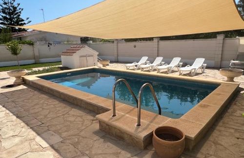 Offering barbecue facilities, La Calma del Delta features accommodations in L'Eucaliptus. This beachfront property offers access to table tennis, free private parking, and free Wifi. On clear days, guests can head outside to enjoy the vacation home's outdoor fireplace or simply kick back and relax. Leading onto a patio with mountain views, the spacious air-conditioned vacation home consists of 3 bedrooms. Providing a terrace with sea views, this vacation home also provides guests with a satellite flat-screen TV, a well-equipped kitchen with a dishwasher, an oven, and a microwave, as well as 2 bathrooms with a walk-in shower and a hair dryer. This vacation home is allergy-free and non-smoking. Guests can eat at the on-site family-friendly restaurant, which is open for dinner, lunch, and cocktails. The vacation home also provides an outdoor swimming pool and an open-air bath for guests to relax in. For guests with children, La Calma del Delta offers a baby safety gate. After a day of snorkeling, windsurfing, or cycling, guests can relax in the garden or the shared lounge area. Eucaliptus Beach is a 3-minute walk from the accommodation, while Delta de l'Ebre is 10 miles away. Reus Airport is 51 miles from the property.