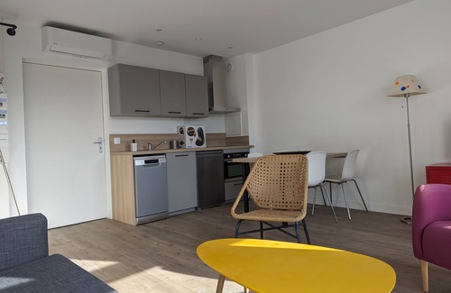 Located in Malakoff, the holiday apartment Malakoff T2 has everything you need for a relaxing holiday. The 41 m² property consists of a living room with a sofa bed for 2 people, a well-equipped kitchen, 1 bedroom and 1 bathroom as well as an additional toilet and can therefore accommodate 4 people. Additional amenities include high-speed Wi-Fi (suitable for video calls), a TV, air conditioning, a washing machine as well as a dryer. A baby cot and a high chair are also available.
