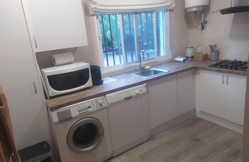 A living room, a BBQ grill, a fireplace, and air conditioning are featured at this 2-bedroom, 1-bathroom rental. Bathroom amenities include a hair dryer, towels, and toilet paper. Prepare a home-cooked meal in the kitchen, complete with a stovetop, a refrigerator, and a dishwasher, as well as a coffee maker, an electric kettle, and a microwave. And because there's access to laundry facilities, you can go a bit lighter on your packing.
