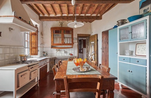 Set on the edge of the tiny village of Brandeglio, in Lucca, this lovely stone villa boasts a great location on a sloping site looking towards the forest-covered hills and down to Bagni di Lucca below. The spacious, fully furnished terrace is just the place to contemplate these captivating vistas and will easily accommodate your party of 12 when you gather for a lingering lunch or pre-dinner drinks. Venture down to the pretty garden to discover your private pool, which also offers sweeping rural views as you swim.