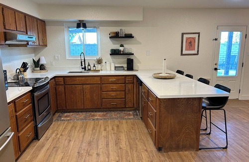 Completely remodeled in 2024, this stylish 3 bedroom 2 bathroom house also features a swimming pool, hot tub, and plenty of outdoor space. New renovations include quartz countertops, updated bathrooms with water fall shower heads, upgraded appliances and office space with a fold down Murphy bed! Centrally located and walking distance to food and shopping!