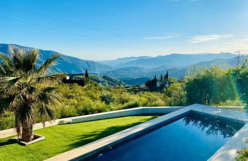 Featuring a garden, La Casa de Cristal - Alpujarra Escape offers accommodations in Órgiva. This property offers a private pool, free Wifi, and free private parking. Offering a terrace and sea views, the villa includes 3 bedrooms, a living room, flat-screen TV, an equipped kitchen, and 3 bathrooms with a bidet and a bath. Guests can take in the views of the mountain from the patio, which also has outdoor furniture. For added privacy, the accommodation features a private entrance. Guests can make the most of the warm weather with the property's barbecue facilities. Federico Garcia Lorca Granada-Jaen Airport is 44 miles away.