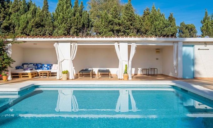 Best-rates for the San Juan de Alicante cottage starts from $332 per night with includes Child Friendly, Pet Friendly, TV, Balcony/Terrace, Fireplace/Heating, Private Pool, Barbecue/Outdoor Cooking, Kitchen, Laundry, Pool, Designated Smoking Area, Bedding/Linens, Wellness Facilities, Guest Services, Hot Tub, Internet, Parking with all other amenities. Perfect for Weddings is committed to ensuring every guest experiences a comfortable and extraordinary stay, whether planning a romantic getaway, a honeymoon, a pet-friendly stay, or celebrating with the entire wedding party.