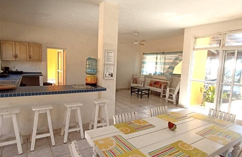 Close to surfing, this beach vacation home brings it all within reach. There's convenient onsite parking, so you can leave your vehicle behind and let your feet make short work of the 6-minute walk to Cuyutlan Beach or the 12-minute walk to Tortugario Ecological Center.