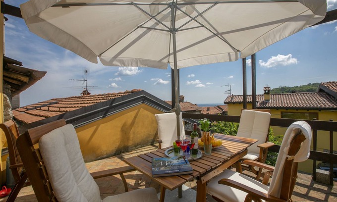 Take in far-reaching lake views from this balcony home, perfect for 5 people on timeless Lake Maggiore!