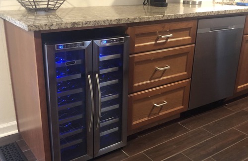 Additional amenities abound, including Wi-Fi, extended basic cable, a large 65-inch flat-screen TV, fully furnished back patio, new appliances, and a full-size washer and dryer. An air mattress is available to accommodate additional guests, while complimentary snacks, wine, beer, and sparkling water add a touch of hospitality.