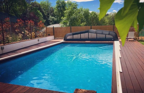 In the garden, you have a private pool surrounded by a security fence for the little ones, swings, basketball hoop, trampoline, barbecue and lots of fruit trees.