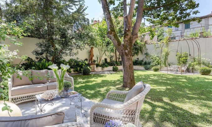 LA CASINA LUXURY GARDEN HOME is located in a very central location inside the Walls of Lucca, within a 3 to 7 mins walk away from both Bus Terminal and Lucca Central Train Station. A convenient parking is located a few steps from the apartment in about 5 mins walk away (they charge 6 euros daily but it is possible to buy a subscription for 50 euros to leave the car for up to 30 days).The apartment is located in the most charming area of the town - the medieval district - very convenient to all sightseeing: 100 metres away from the main shopping street VIA FILLUNGO, 150 metres away from PIAZZA SAN MICHELE, 200 metres away from the PIAZZA GRANDE (also known as Piazza Napoleone) and the Lucca Summer Festival Concerts, 150 metres from the Theatre, 200 metres from The Cathedral of San Martino and the Guinigi Tower - one of the most renowned attractions of the town.The property was originally a 1600s Carriage House and has been totally renovated in mid 2022 and has a spacious portion of antique garden with several corners for dining and relaxing admiring the century old trees. The apartment is fully air conditioned and is provided with the most reliable wifi connection provided by the national phone company.The apartment (on two levels) has a romantic view over the private garden and has a porch to have dining outside as well as a patio with sofas and loungers under the century old trees. The apartment comes with a laundry room with washer and clothes dryer, iron and board.The fully equipped kitchen has dishwasher, electric oven, microwave, steam oven, 5 ring stoves, freezer, refrigerator, a wide selection of pots and pans with several cooking utensils and quality China crockeries, toaster, American coffee maker and a kettle. Anything special that might be needed will be bought for my guests with pleasure!The 49’’inch flat tv in the master bedroom has Amazon Tv with movies in English and a wide selection of international channels.4 guests can sleep comfortably: the master bedroom with 4 windows overlooking the garden has a king size colonial bed by Flamant with a high end quality mattress and memory foam pillows while the second bedroom with quality mattress and state of the art bathroom fittings is located in the hayloft just across the outdoor dining area.Not included in the rental price:Tourist tax (mandatory and required by local municipality)Midstay and/or weekly cleaning and change of towels and linensBaby cot's linensIncluded in the rental price:Final CleaningTowels and linensElectricityGasWaterInternet WifiHigh chair (upon request at booking)Babycot (upon request at booking)