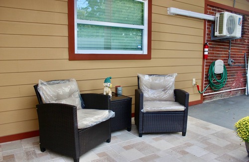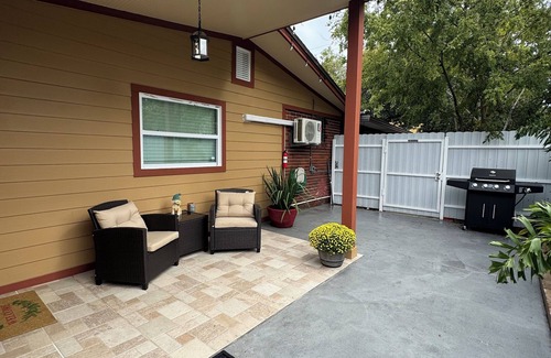 A BBQ grill and air conditioning are featured at this 1-bedroom, 1-bathroom rental. Connect to the WiFi, or get cozy in front of the Smart TV. Bathroom amenities include a hair dryer, towels, and toilet paper. The kitchenette is equipped with a stovetop and a refrigerator, as well as a coffee maker, a microwave, and cookware. Other amenities include bed sheets, an ironing board, heating, and a dining table.
