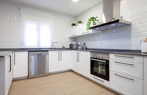 The house has 5 spacious rooms, 4 of them with double beds and one with two single beds (bunk beds). It also has 3 bathrooms with shower, dining room, living room with TV, laundry area and fully equipped kitchen with utensils and dishwasher.