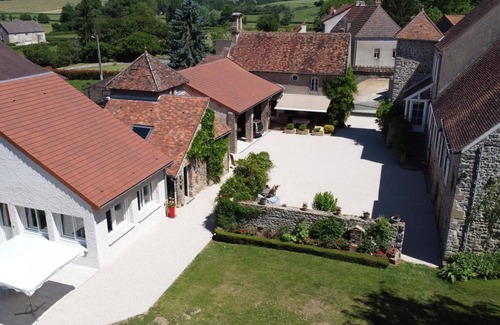 Authentic gîte set in the chapel of a former priory, located in the heart of a charming little typical village. Nestled in the countryside, this small, quiet village with its original heritage (neo-classical town hall, neo-Romanesque church, neo-Gothic girls' school, etc.) adjoins the Canal du Centre and the greenway ("Le Fleuve tranquille", a navigable route nestled in the heart of nature with beautifully preserved banks, to be discovered during a boat trip or on foot) in a magnificent, preserved rural and natural setting of hedged fields, forests, ponds, rivers and meadows, neighboring the world-renowned vineyards of the Côtes Chalonnaise (including the nearby Couchois) and Côtes de Beaune. Privileged setting and site, ultra-restful and relaxing. Spacious, very comfortable gîte. Warm character combining contemporary inspirations and careful heritage conservation (beams, oculi). Exotic atmosphere of an old residence steeped in history and the cocooning and cozy atmosphere of a comfortable country house. Possible introduction to watercolor painting and work of Clay (paid course + shop). Layout: Detached house, near the owners' home (shared courtyard). Wi-Fi. Electric heating + wood-burning stove (fireplace for added pleasure). Ground floor: living room-kitchen-lounge (1 sofa bed 140x190cm as an extra), laundry room (separate toilet). 1st floor: 2 bedrooms (1 double bed 140x190cm / 2 single beds 90x190cm), bathroom (shower), separate toilet. Enclosed grounds of approximately 6000 m² (courtyard + shared garden) + private terrace. Shared swimming pool + table football + ping-pong. Carport (1 space). Park. 8 bicycles available (+ 2 child seats). Shops & services 6 km. TGV station: Le Creusot 14 km. Parc des Combes Le Creusot 14 km