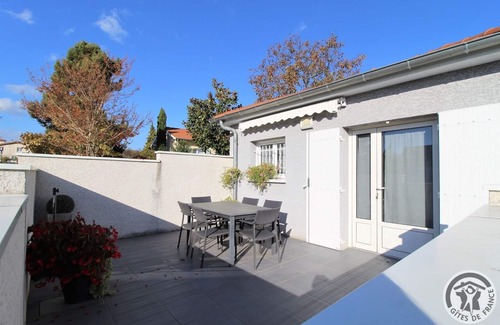 In Saint-Andeol-Le-Chateau / Beauvallon small accommodation for 3 people near the city of Givors and A7 motorway access. Modern house backing on to owners' house in a quiet street. 2nd gîte for 4 people nearby (100 m away), the 2 accommodations can be booked jointly for a family gathering. All rooms on one level. Ground floor : entrance via terrace in living room (kitchen/ dining/ lounge areas, sofa bed to provide separate sleeping arrangement). 2 bedrooms : (Bedroom 1 includes the shower room with WC, double bed) (Bedroom 2 with single bed & study area). 'Split' system for heating & air conditioning. Baby equipment on request (cot, high chair, bathtube). Bed linen & towels supplied free. Outdoors : tiled and enclosed terrace (outdoor furniture, relax area), 2 parking areas available. Public park with trees & fitness trail about 400m away, many leafy spots nearby. Zoo of St Martin La Plaine 10 km, Museum of St Romain en Gal 14 km, Vienne 21 km, Lyon 27 km, St Etienne (City of design) 50 km. Extra charge for pet : 3 euros/night.