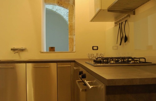 Den oprindelige lejlighed i stueetagen er præget af udsatte stenmure, en "balat" sten gulv og trælofter i æraen. Ligesom de fleste gamle sicilianske huse blev det bygget med tykke stenvægge for at holde sommervarmen væk og med små vinduer med udsigt over en indre gård for at holde det køligt og blæsende. Vi tilbyder en helt uafhængig lejlighed, udstyret med et køkken med spiseplads, to soveværelser med dobbeltsenge og et moderne badeværelse. Området "chiostrina" tilbyder ekstra plads til afslapning