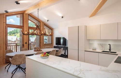 Prepare breakfast in your fully equipped kitchen before collecting your skis from the private ski room, which features boot heaters. In summer, you can use one of the two private garages for bike storage. Walk to the nearby Le Bettex ski lift, just 100 metres away, which takes you directly to the 3 Vallees ski area, the largest in the world.