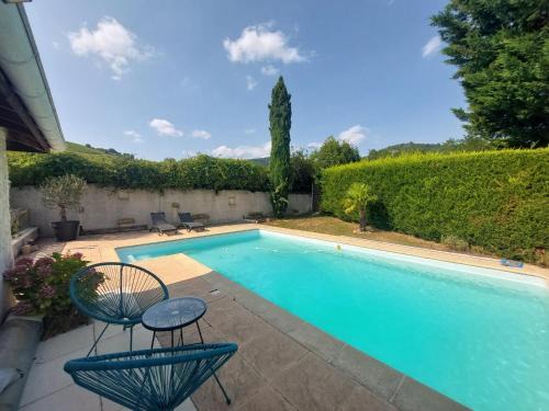 Offering a garden, La Commanderie - Le Perreon provides accommodations in Le Perréon. This property offers access to a terrace and free private parking. The guest house features a pool with pool views, hot tub, and private check-in and check-out. With free Wifi, this guest house offers a cable flat-screen TV, a washing machine, and a fully equipped kitchen with a dishwasher and oven. Guests can take in the views of the mountain from the balcony, which also has outdoor furniture. The guest house offers bed linen, towels, and laundry service. A mini-market is available at the guest house. Musée Miniature et Cinéma is 30 miles from the guest house, while Lyon Perrache Train Station is 30 miles from the property. Lyon - Saint Exupery Airport is 39 miles away.