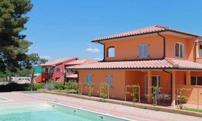 Residence composed of 27 holiday apartments situated at about 800 m from the seaside and at 7 km from the medieval hamlet of Scarlino. Some of the most beautiful beaches of Tuscany like Cala Violina and Cala Martina can be reached in some minutes (only 8 kilometers far) while the beaches of Castiglione della Pescaia and Punta Ala can be reached in 20 minutes by car. The location of the apartments is such that you can easily discover the natural attractions of Tuscany and visit the Uccellina Natural Park, Monte Argentario area or explore some interesting villages like Pitigliano, Sovana and Populonia. The apartments have been recently built and they are equipped with air conditioning. At guests disposal a large shared swimming pool (7x14, depth 1,10m - 1,40m)(15/05-30/09) with children area (3,5x 4,7 depth 0,70 - 0,90 m) with sun umbrellas and deckchairs. In a separate room guests can find the shared laundry (washing machine, iron and ironing board). On request and to be paid on the spot: domestic help, extra linen change, breakfast service.