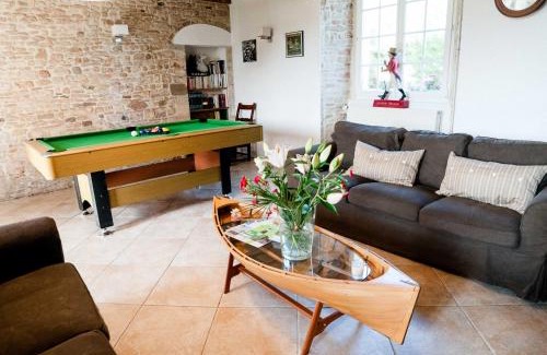 La demeure d'Ervée is located in Isigny-sur-Mer, just 15 miles from Omaha Beach Memorial Museum and 15 miles from Omaha Beach. 6.5 miles from German War Cimetery and 11 miles from Pointe du Hoc D-Day, the property provides free bikes and barbecue facilities. There's a picnic area and guests have access to free Wifi, free private parking, and an electric vehicle charging station. Featuring a terrace and garden views, the spacious vacation home includes 5 bedrooms, a living room, satellite flat-screen TV, an equipped kitchen, and 3 bathrooms with a shower. The parquet floors, fireplace, and peaceful vibe add to the ambience of the room. The property has an outdoor dining area. For visitors looking to embark on day trips to nearby landmarks, the vacation home features a selection of packed lunches. You can play billiards and table tennis at this 4-star vacation home, and the area is popular for cycling and hiking. Outdoor play equipment is also available at La demeure d'Ervée, while guests can also relax in the garden. Overlord Museum is 16 miles from the accommodation, while Haras of Saint-Lô is 18 miles from the property. Caen–Carpiquet Airport is 39 miles away.
