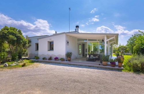 A few kilometers from Lecce immersed in the colors and tranquility of the Grecìa Salentina countryside stands "La Dimora dei Gelsi". The villa, in a contemporary and minimalist style, is equipped with all the comforts (wifi, TV in every room, air conditioning, washing machine, dishwasher, etc.). It consists of a living room with fireplace, sofa bed and open kitchen, three bedrooms, two wc and a large living room surrounded by glass windows with sliding doors overlooking the garden and equipped with comfortable seating, smart TV and hifi system. Ideal for outdoor dining or relaxing. Outside the villa is embellished by a delightful swimming pool with a relaxing space shaded by pines and eucalyptus trees. The best for a holiday of nature, privacy and comfort just a short distance from the beautiful beaches of Vernole (11 km), Melendugno (12 km) and Otranto (16 km). We accept pets.