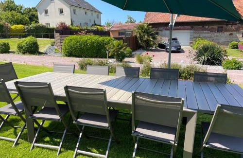 La ferme d'Hareauville - Heated swimming pool offers accommodations in Criquetot-lʼEsneval, 6.5 miles from Etretat's Cliff and 17 miles from Saint Michel's Church. Guests can go for a swim in the private pool. There's a sun terrace and guests have access to free Wifi, free private parking, and an electric vehicle charging station. This vacation home includes 5 bedrooms, 2 living rooms and a flat-screen TV, an equipped kitchen with a dining area, and 4 bathrooms with a bath and a washing machine. Guests can enjoy a meal on an outdoor dining area while overlooking the garden views. For added privacy, the accommodation features a private entrance. Guests can also relax in the garden. Perret Model Appartment is 17 miles from the vacation home, while Volcano is 17 miles away. Deauville - Normandie Airport is 29 miles from the property.