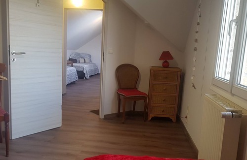 This twin room has two beds (90 x 200 cm), ideal for a restful night. This room is often used for teenagers where the parents can sleep in the room “Pig” located on the first floor next to the room “Goat”. You have a view of the farm entrance.