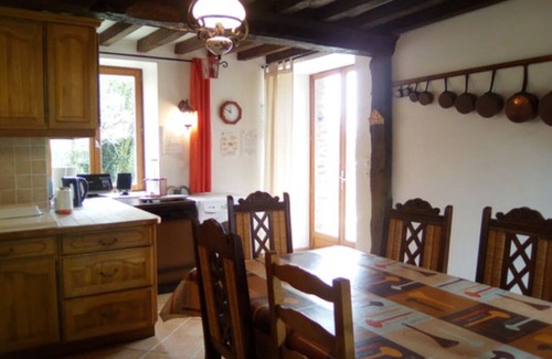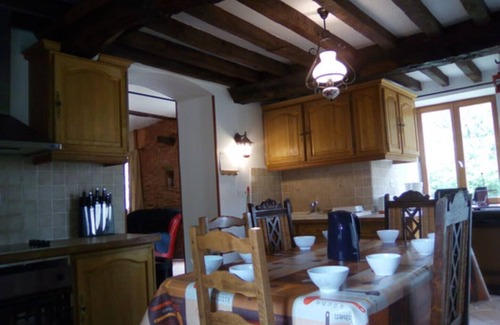 DESCRIPTION: Detached 7-bedroom gîte, certified by the Gîte de France and furnished for tourism, for 14 people. This very old house built of stone, earth, and wood has been renovated in keeping with its period of construction. The D-Day landing beaches are about 20 km away, and Mont Saint-Michel is 80 km away.