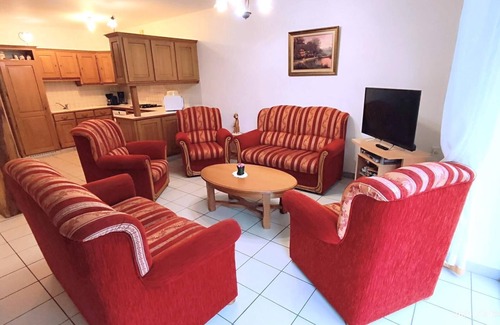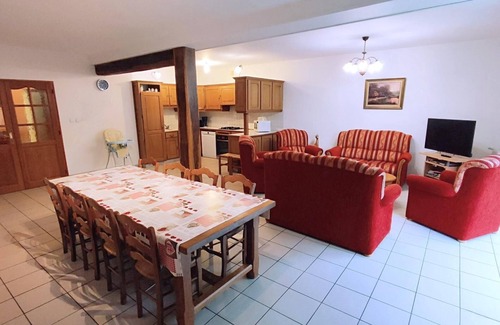 Old renovated farmhouse, semi-detached to another gîte in the village. 1500 m² wooded land, terrace. Garage (dryer). Ground floor: living room / lounge (TV, DVD) with kitchen area (microwave, freezer). 1 ch. access. to pers. with reduced mobility (2 single beds). Shower room with wc access. to pers. with low mobility. Floor: relaxation area (TV, DVD player). 1 ch. (4 single beds). 1 ch. (2 single beds). 1 ch. (1 double bed). Bathroom. WC. Childcare equipment. Gas central heating. Cleaning deposit 100 euros. Leisure center, aviation museum, aerodrome 1 km. Sedan (largest fortified castle in Europe), Mouzon (felt museum ...) 8 km. Bouillon, Belgium 20 km. Patronal feast near the lodgings on the last weekend of August.
