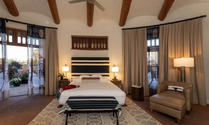 Best-rates for the Downtown Santa Fe hotel starts from $333 per night with includes Breakfast, Balcony/Terrace, Bedding/Linens, Fireplace/Heating, Hot Tub, Laundry, Pool, TV, Spa, Child Friendly, Accessibility, Security/Safety, Wellness Facilities, Restaurant, Internet, Kitchen, Air Conditioner, Parking, Wheelchair Accessible, Business Services, Skiing, Bar, Guest Services with all other amenities. Perfect for Weddings is committed to ensuring every guest experiences a comfortable and extraordinary stay, whether planning a romantic getaway, a honeymoon, a pet-friendly stay, or celebrating with the entire wedding party.