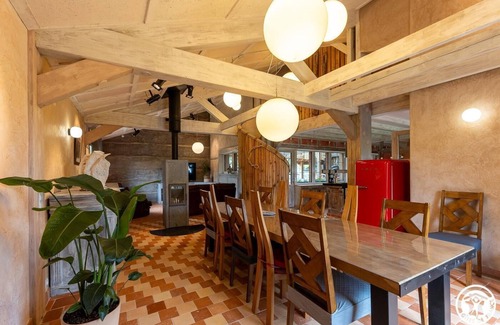 In the heart of Puy-de-Dôme, this unique and welcoming cottage for 6 people welcomes you to a preserved natural setting with unobstructed views of the surrounding landscapes. An ideal place to reconnect with what matters most, with family or friends. Designed as a passive house, this building with bold architectural lines combines contemporary comfort with an ecological commitment. Lime plaster, local wood, bio-sourced materials: every detail reflects a true environmental awareness. With its warm living space, open to nature, this cottage offers a unique experience, both restorative and inspiring. And to make it all even more enjoyable: the welcome from the owner, passionate about his place and his way of life, matches the decor. Warm and curious, he will be happy to chat with you and share his inspirations in a friendly and friendly atmosphere. The cottage is composed as follows: On the ground floor: - a living room-kitchen - a separate toilet - a shower room - a bedroom with a king-size bed - a bedroom with a queen-size bed - a library area Upstairs, accessible by a spiral staircase: - an attic bedroom with two single beds and one queen-size bed (2 additional guests are welcome free of charge) Outside: - accessible from the kitchen: a covered terrace with garden furniture and a gas barbecue - at the entrance: a covered outdoor area with a relaxation lounge Private parking in front of the entrance to the accommodation (minimum 3 spaces). To enhance your stay, a partial reconstruction of an old forge has been created for educational purposes. It allows you to discover the artisanal heritage of the place and offers a unique perspective on the skills of yesteryear. Please note: the owner's dog, sometimes a little curious, may occasionally wander onto the property.