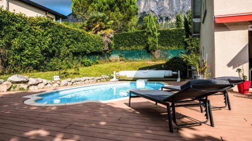 Featuring a garden, La Galante provides accommodations in Meylan. This property offers a private pool, free Wifi, and free private parking. Outdoor seating is also available at the villa. Providing a terrace and mountain views, the villa includes 4 bedrooms, a living room, flat-screen TV, an equipped kitchen, and 3 bathrooms with a bidet and a bath. Towels and bed linen are provided in the villa. For added privacy, the accommodation has a private entrance and soundproofing. A car rental service is available at La Galante. Grenoble Train Station is 6.2 miles from the accommodation, while WTC Grenoble is 6.5 miles away. Alpes–Isère Airport is 35 miles from the property.