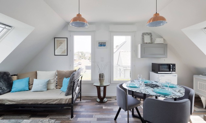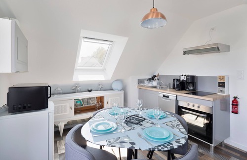The Cocoonr/Book&Pay agency is offering for rent this attractive, fully renovated 30 m² flat, which can accommodate two people. Located on the first and top floor (no lift) of a house in a residential area, the flat is just 300 meters from De Longchamp beach in Saint-Lunaire. It comprises a living room with open-plan kitchen, a separate bedroom with 160 x 200 double bed, a bathroom with shower and separate WC. Bed linen and towels are extra.