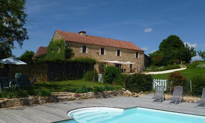 Featuring a garden, La Garipiere offers accommodations in Carvès. This 4-star vacation home offers pool with a view. The vacation home also provides free Wifi, free private parking, and facilities for disabled guests. Opening onto a patio with garden views, the spacious vacation home consists of 5 bedrooms. Providing a terrace with pool views, this vacation home also provides guests with a flat-screen TV, a well-equipped kitchen with a dishwasher, an oven, and a microwave, as well as 4 bathrooms with a walk-in shower and a hair dryer. There's also a seating area and a fireplace. Guests can make the most of the warm weather with the property's barbecue facilities. For guests with children, the vacation home features outdoor play equipment and a baby safety gate. Guests at La Garipiere can enjoy table tennis on-site, or walking tours in the surrounding area. Sarlat-la-Canéda Train Station is 16 miles from the accommodation, while Lolivarie Golf Course is 2.9 miles away. The nearest airport is Bergerac Dordogne Périgord Airport, 33 miles from La Garipiere.