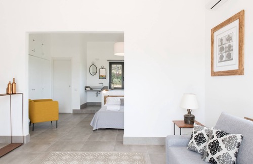 The essential and modern style, with an open bedroom that blur the line between bedroom and shower.