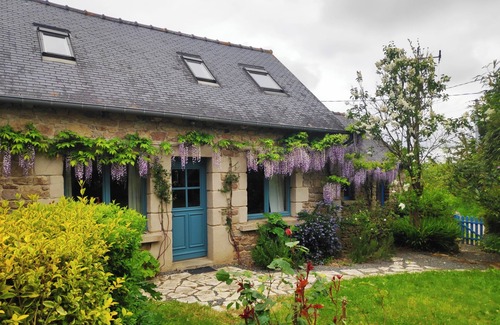 In a small hamlet, this charming stone house is located in the Breton countryside, 20 minutes from the beaches. It features a lovely, private, tree-lined garden with a barbecue area and garden furniture.