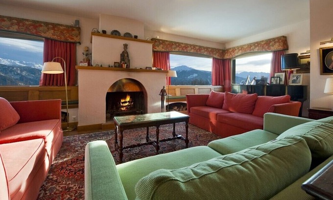 Beautiful private family home, formerly the winter residence of Baroness Ilia van Harinxma thoe Slooten, is situated on the very edge of Crans-Montana. Its special warm atmosphere, combined with luxury, open log fires, stripped wooden floors, oil paintings and antiques bring character and warmth to rival any Alpine chalet. It will without doubt, leave you with a lasting impression: modern comfort and amenities combined with classic furnishings render this chalet into a truly unique place. Over the years many famous personalities have enjoyed the chalet and its gorgeous views over the Rhone Valley with over fifteen 4000 meters + mountains, including the Weisshorn (4505), the Matterhorn / Cervin (4477), the Mont Blanc (4807), the Dent Blanche (4357).