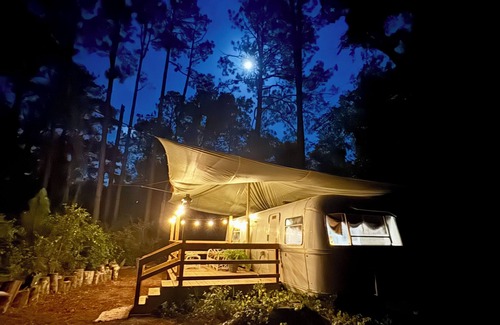 Nestled on a peaceful 10-acre homestead just minutes from Gainesville Airport, The Raceway, and city proper this renovated 1976 Avion La Grande Caravan offers a perfect blend of retro charm with modern touches.